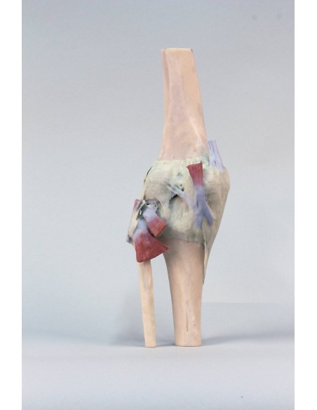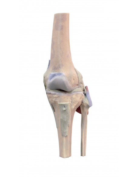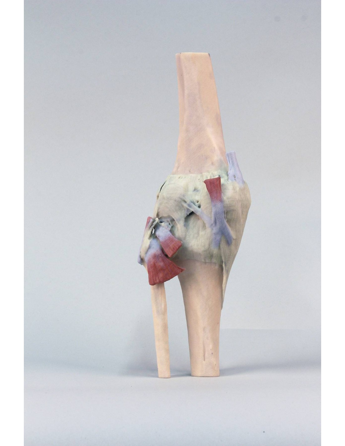 Este modelo impreso en 3D muestra los ligamentos de la articulación de la rodilla con la pierna en extensión; representa la misma muestra que la articulación de rodilla MP1800 impresa en posición flexionada. Los ligamentos colaterales tibial y fibular están intactos.