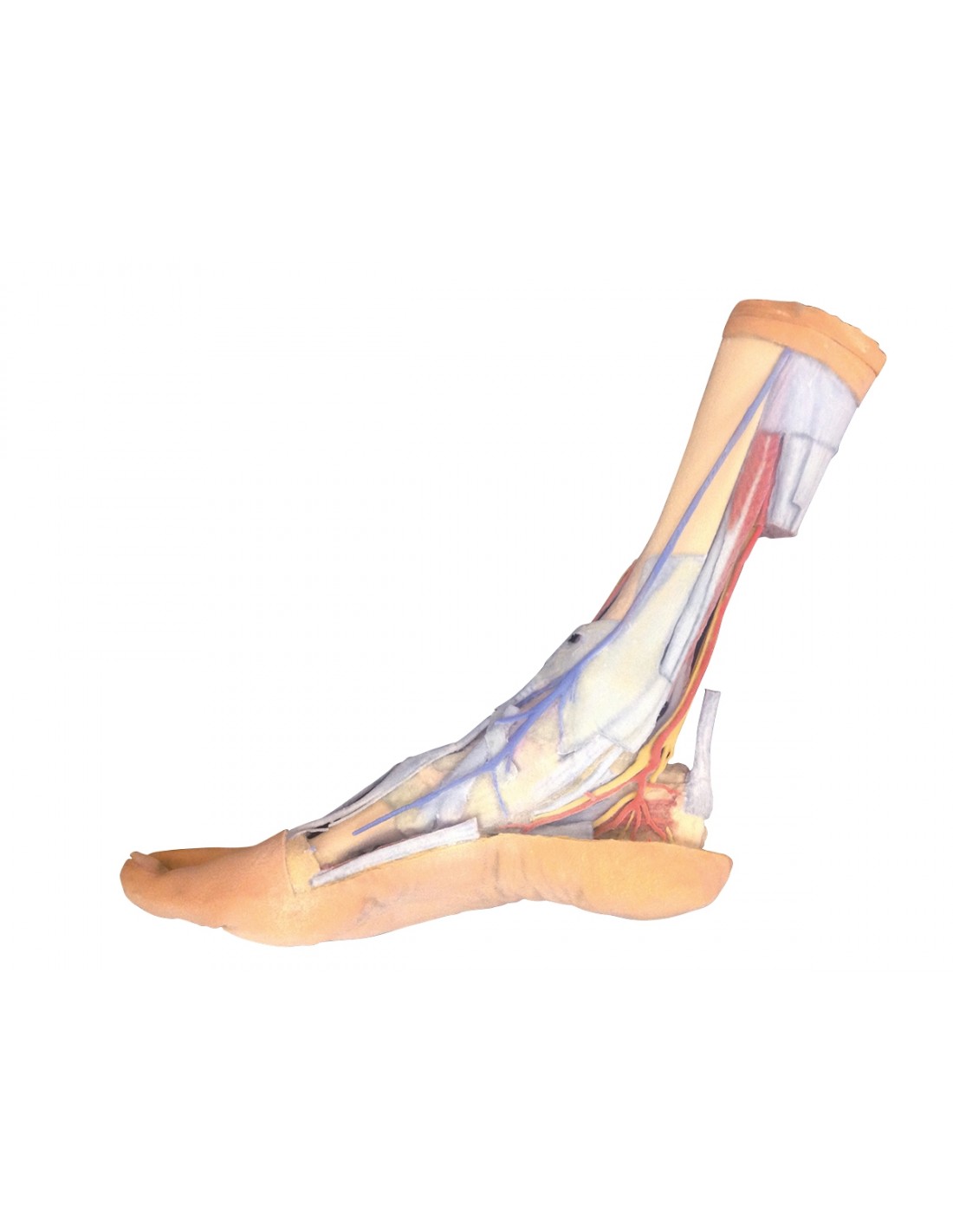 Este modelo de disección impreso en 3D presenta estructuras, superficiales y profundas, de una pierna y un pie derecho.