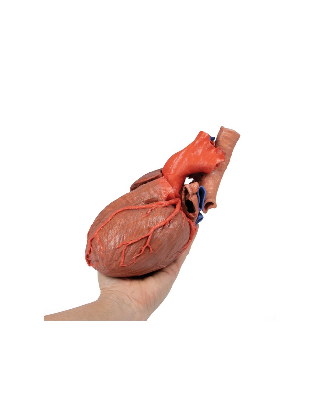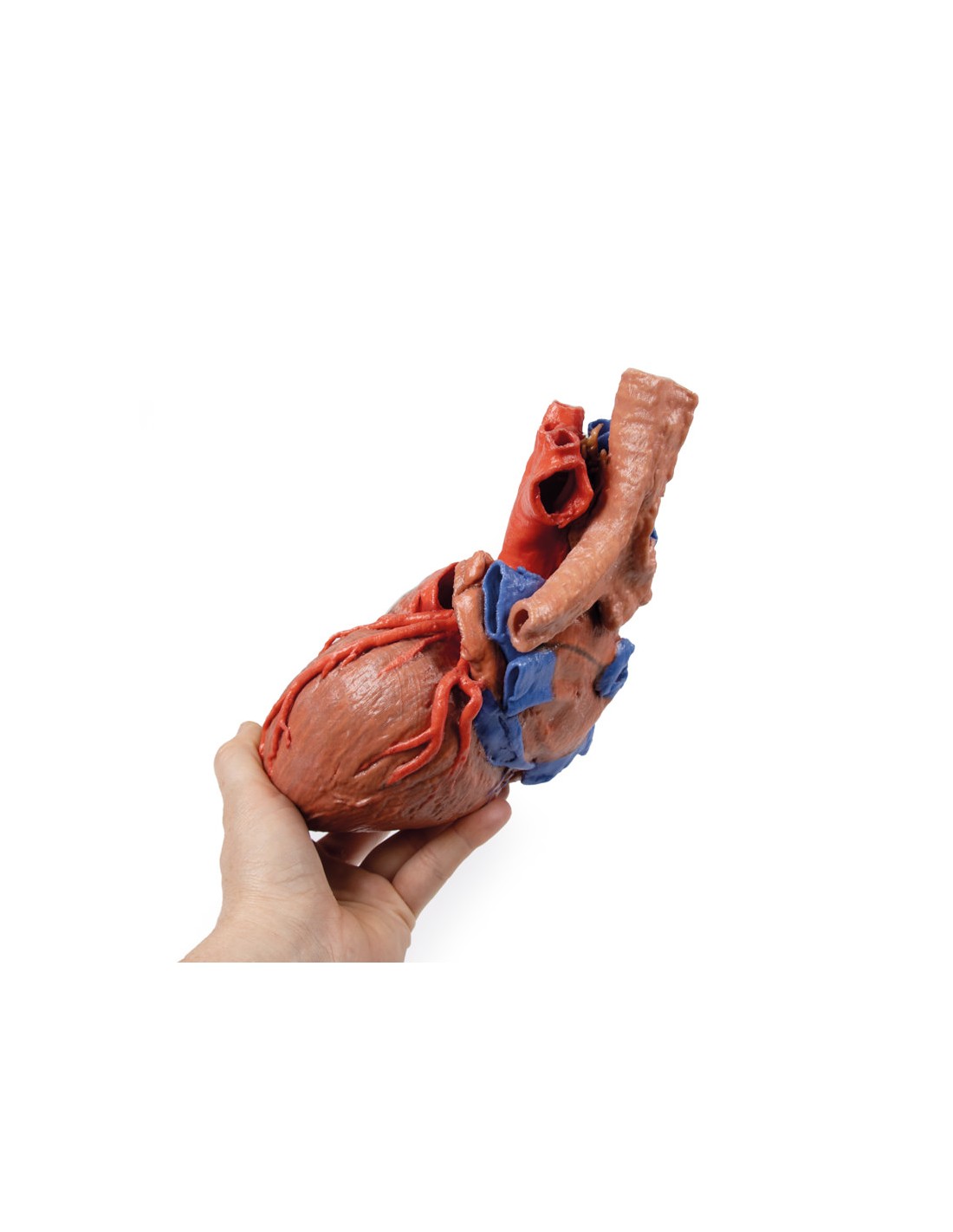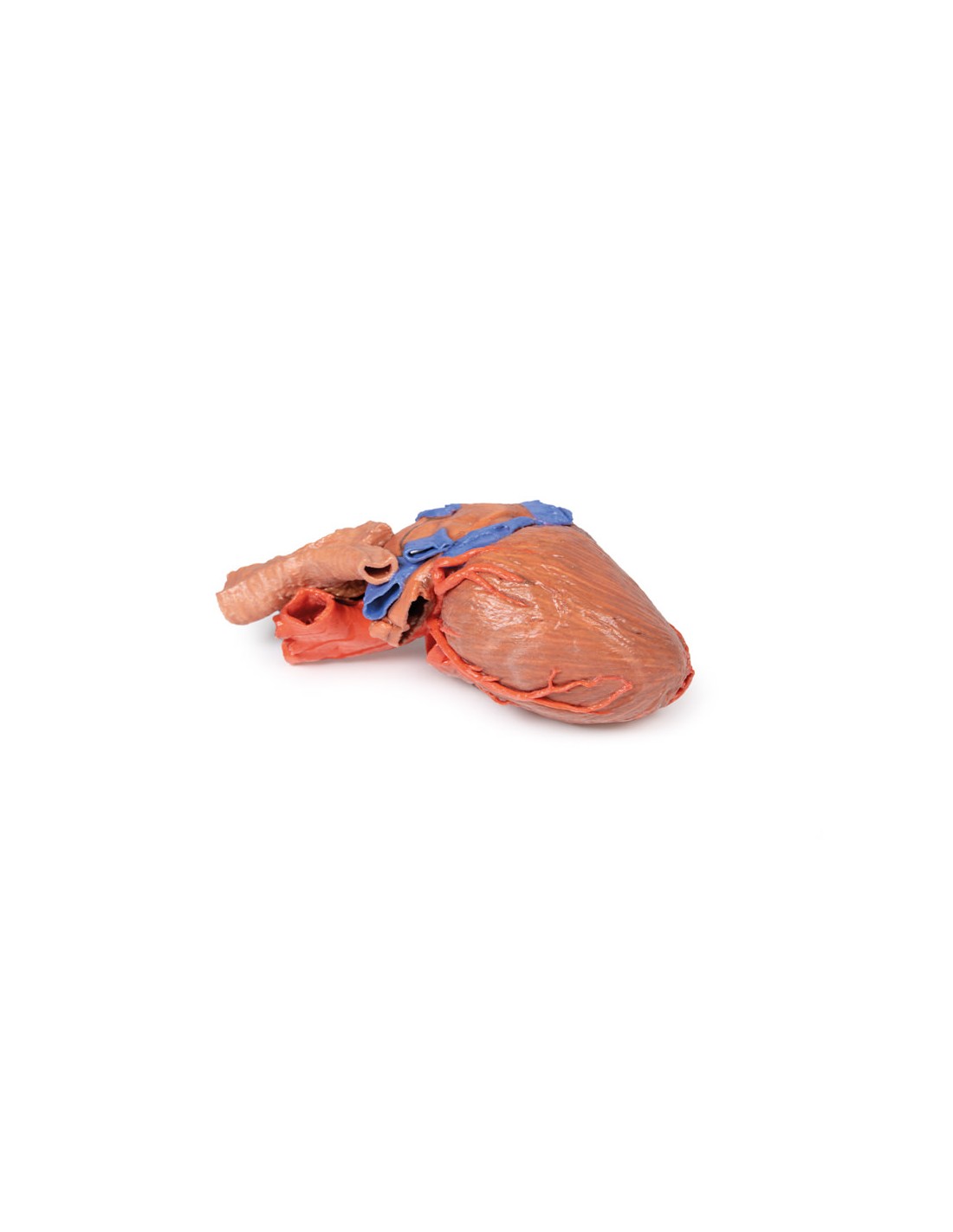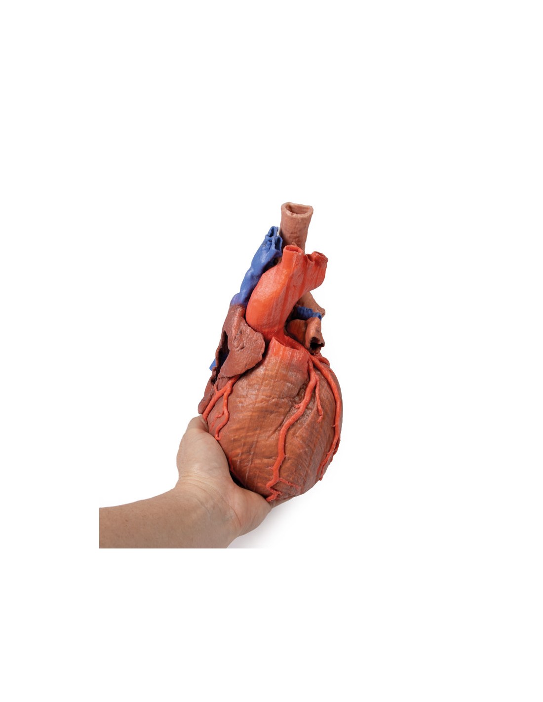 Este modelo anatómico impreso en 3D del corazón conserva la anatomía externa del corazón y la tráquea distal, la carina y los bronquios primarios en el mediastino posterior en relación con los grandes vasos y la aurícula izquierda (que muestra los reflejos pericárdicos de los senos pericárdicos transverso y oblicuo).