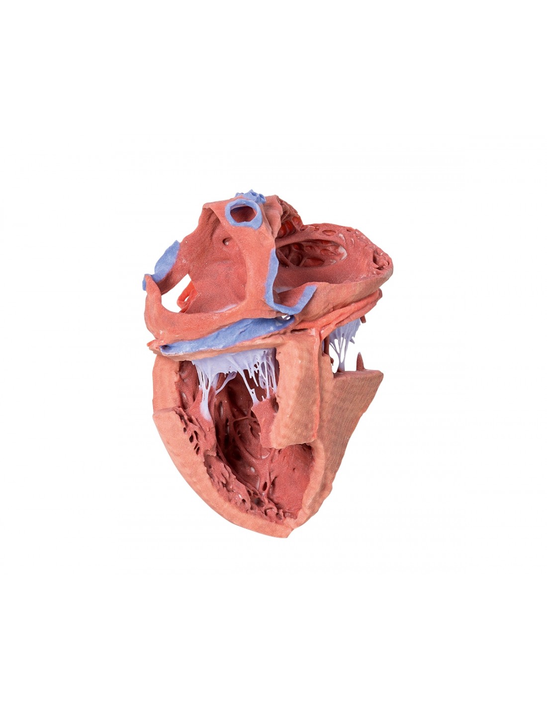 Este corazón impreso en 3D ha sido disecado para visualizar las estructuras internas de las cámaras.