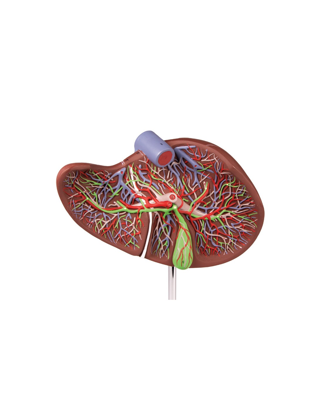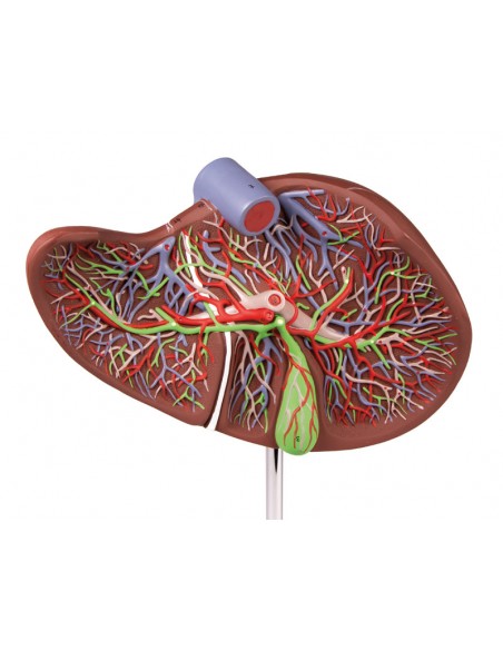 En el modelo pueden observarse las estructuras anatómicas y la disposición de arterias, venas, vena porta y conducto biliar.