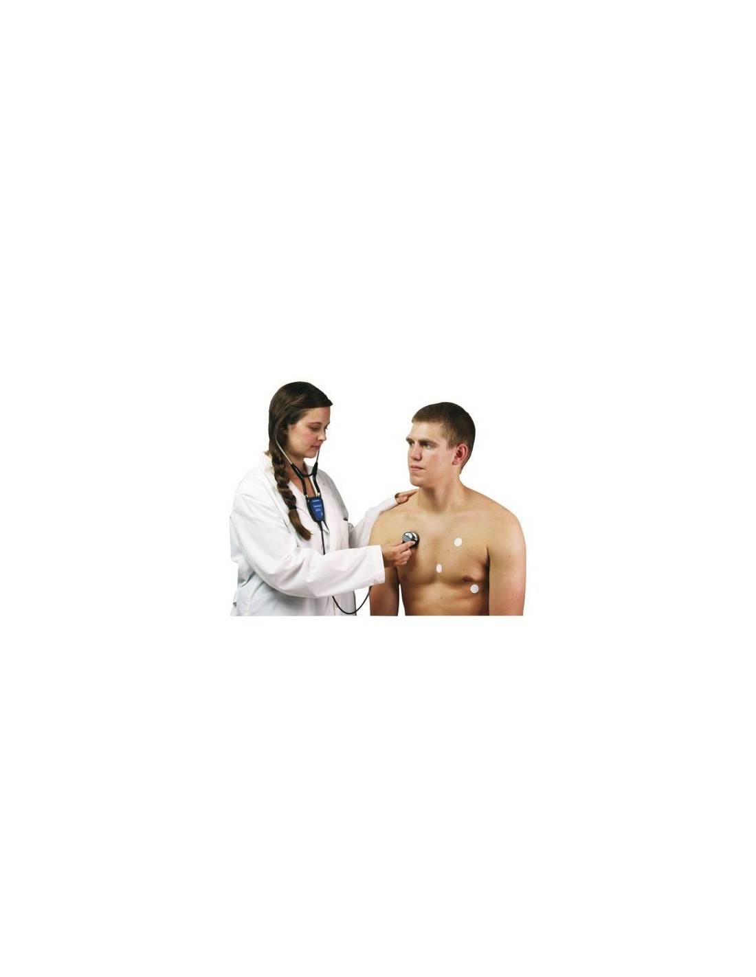 Basta con colocar los parches en las posiciones de auscultación típicas y programar el SimScope; si el estudiante coloca el SimScope sobre un parche, el sonido programado se oirá en el SimScope.