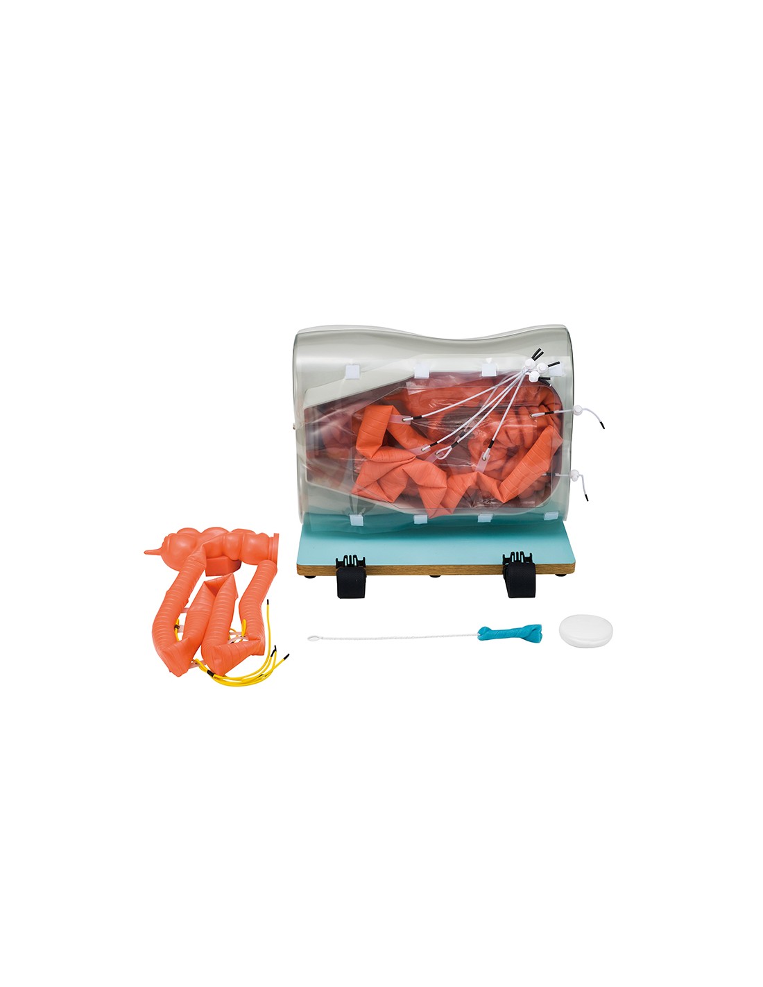 El simulador de colonoscopia es un modelo educativo avanzado diseñado para practicar las técnicas de inserción del colonoscopio. Fabricado en silicona especial de alta calidad, reproduce fielmente la textura y el aspecto del tejido humano, tanto al tacto como en el campo de visión del endoscopio. Incluso la coloración interna está diseñada para parecerse a la real, garantizando una experiencia de formación extremadamente realista.