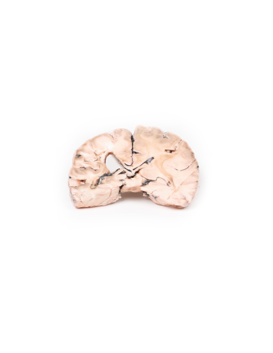 Este modelo de disección que muestra un infarto cerebral izquierdo es parte de la serie exclusiva de anatomía 3D Monash, una serie completa de disecciones humanas reproducidas en impresión 3D en color de ultra alta resolución.