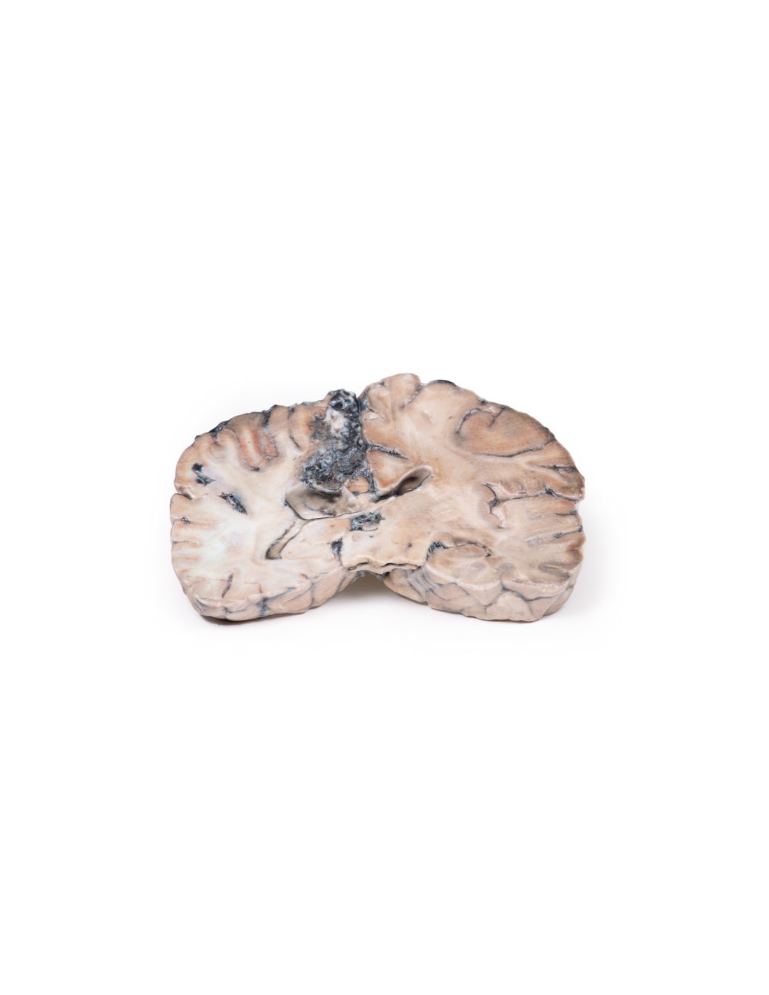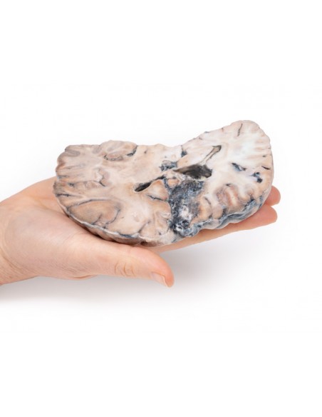 Este modelo de disección que muestra una malformación arteriovenosa cerebral es parte de la serie de anatomía 3D exclusiva de Monash, una serie completa de disecciones humanas reproducidas en impresión 3D en color de ultra alta resolución.