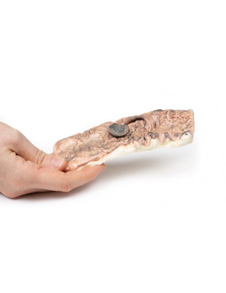 Este modelo de disección que muestra un adenoma colónico pedunculado es parte de la exclusiva serie de anatomía 3D Monash, una serie completa de disecciones humanas reproducidas en impresión 3D en color de ultra alta resolución.