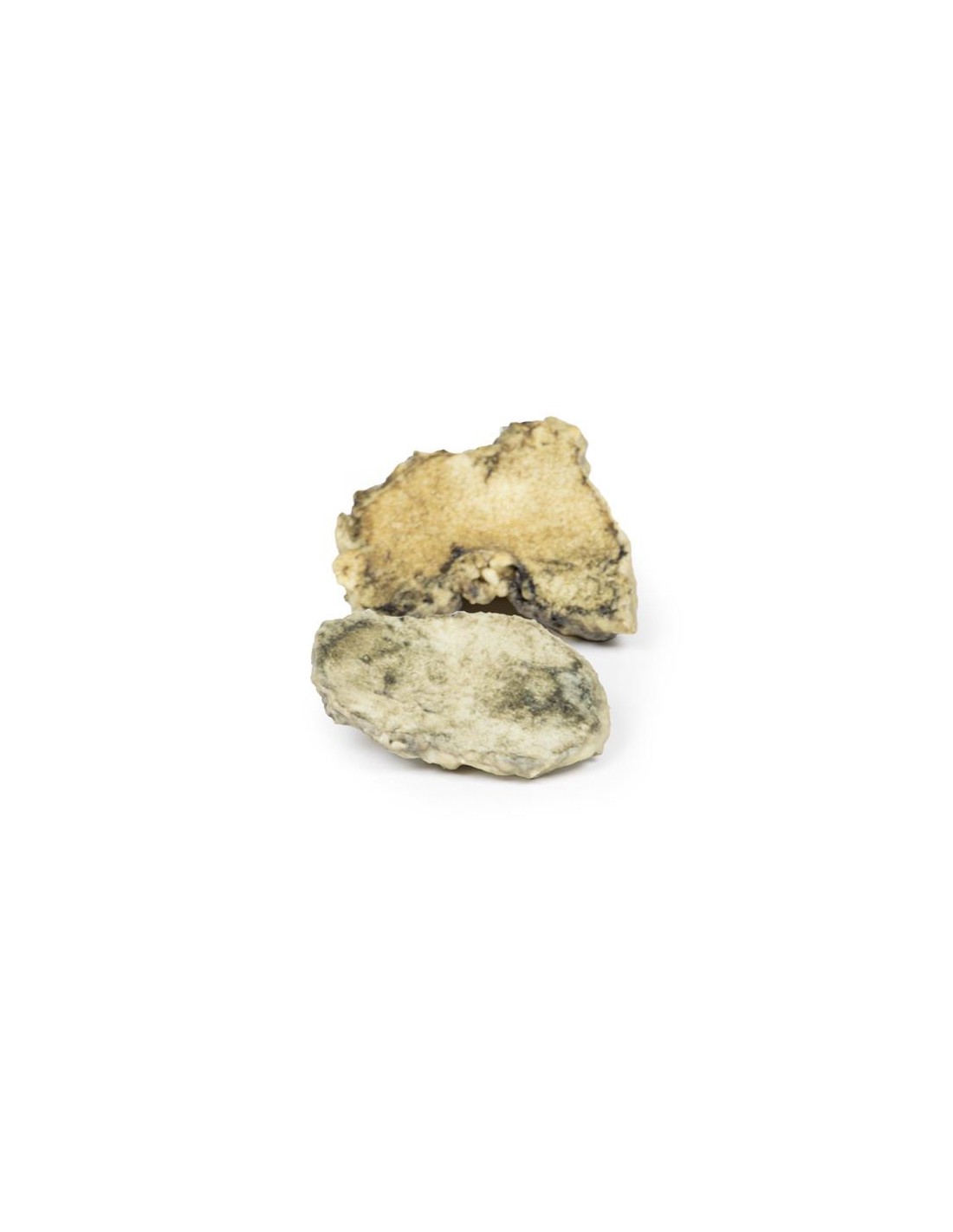 El espécimen muestra las superficies articulares de un fémur y una tibia. Las superficies de las juntas han sido severamente erosionadas. Son de color pardo, muy irregulares y presentan adherencias apelmazadas y placas de material necrótico amarillo. No hay cartílago articular normal. En los cóndilos femorales hay protuberancias óseas irregulares de tamaño variable (hasta 1 cm de diámetro). Se cultivó Staphylococcus aureus de la articulación. Este es un ejemplo de artritis supurativa en una articulación previamente dañada por la tuberculosis.