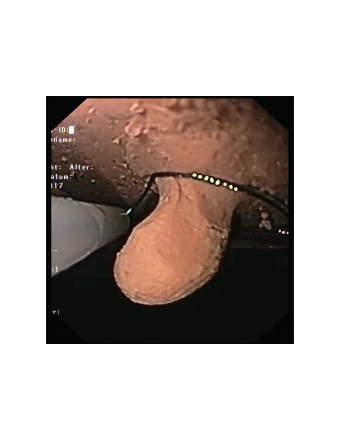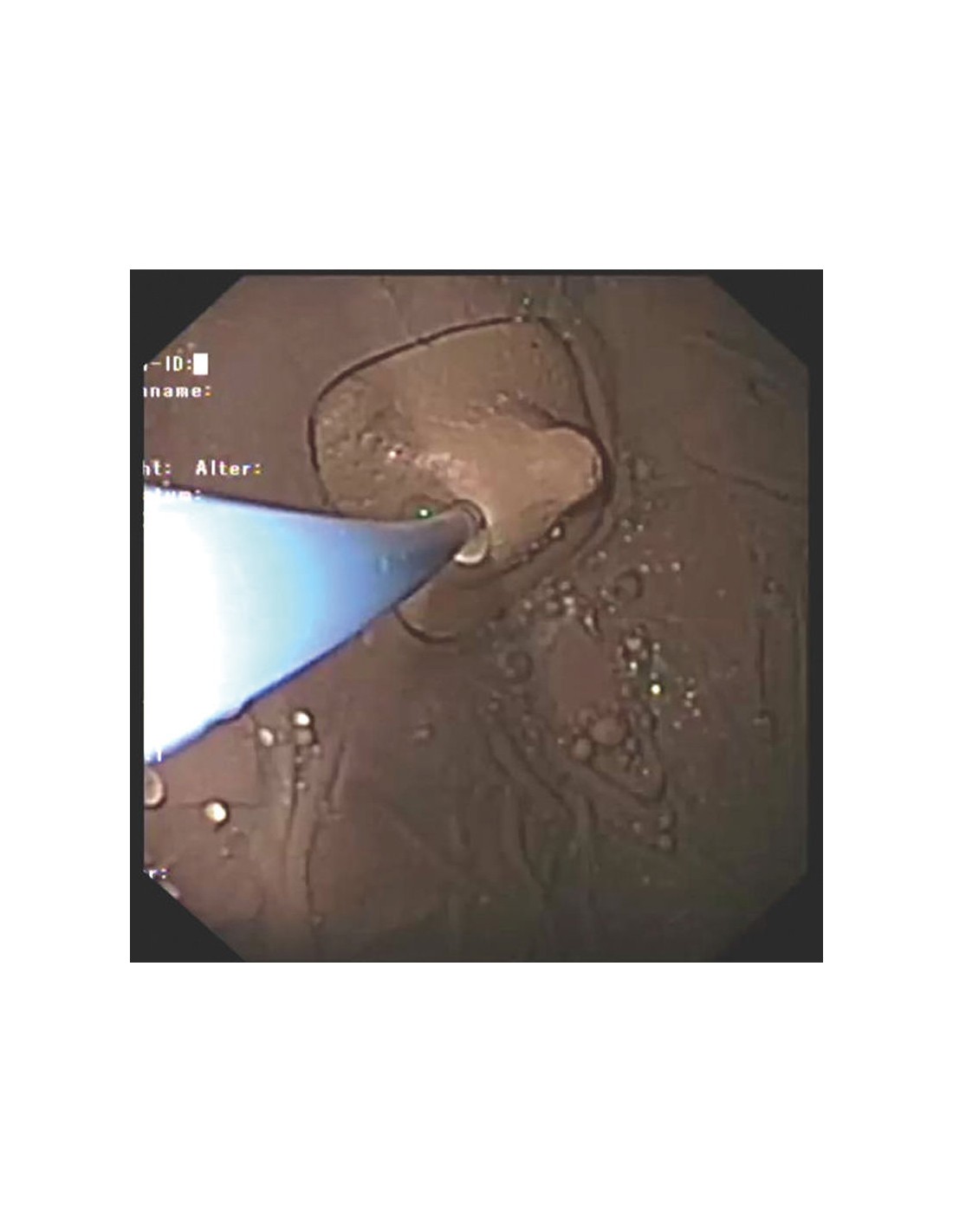 La inserción del endoscopio puede realizarse tanto con el método transoral como con el método transnasal, y está provisto de úlceras y pólipos para su observación.
