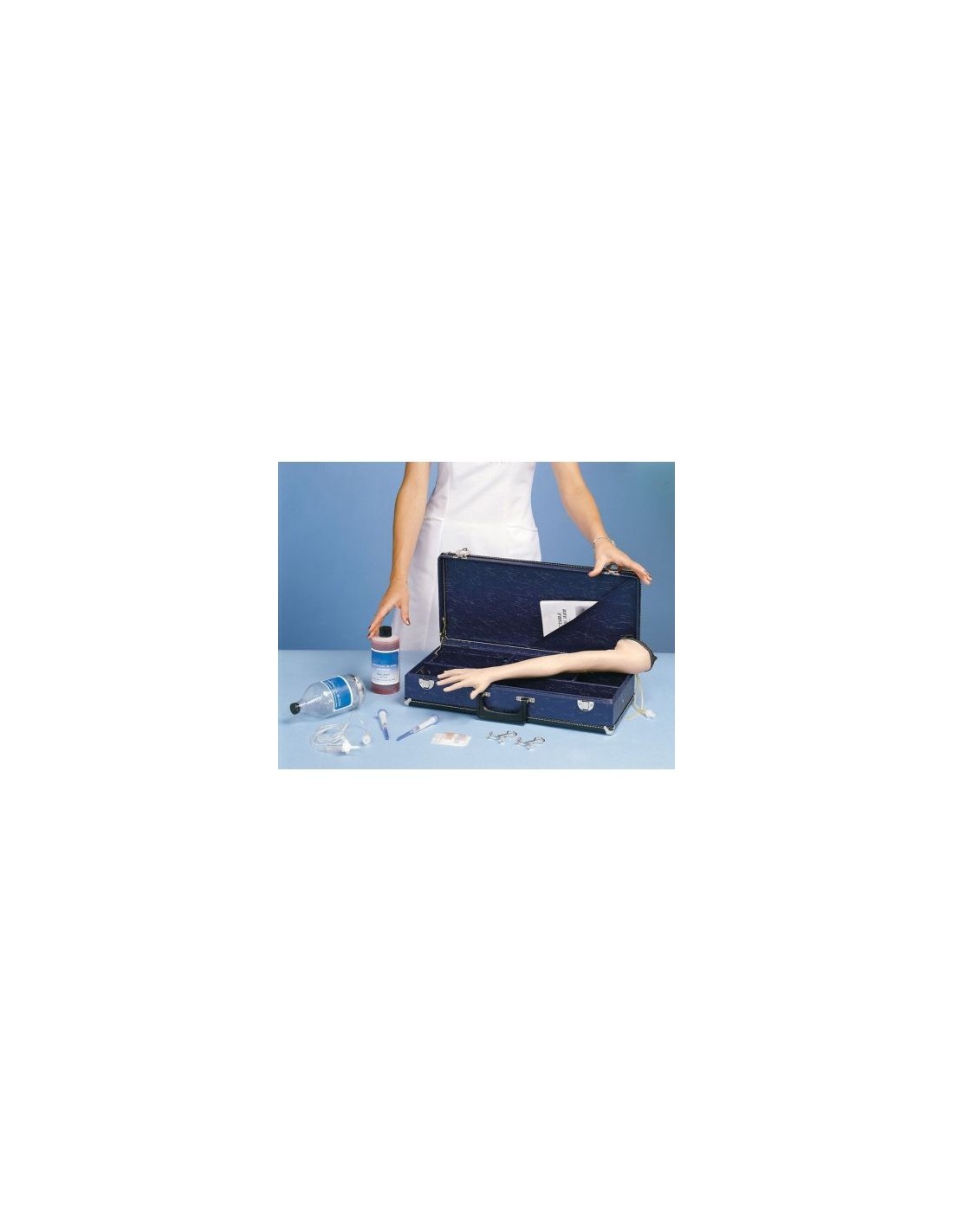 El simulador de brazo Erler Zimmer R10007 para inyecciones intravenosas e intramusculares incluye un cómodo maletín rígido para un transporte seguro.