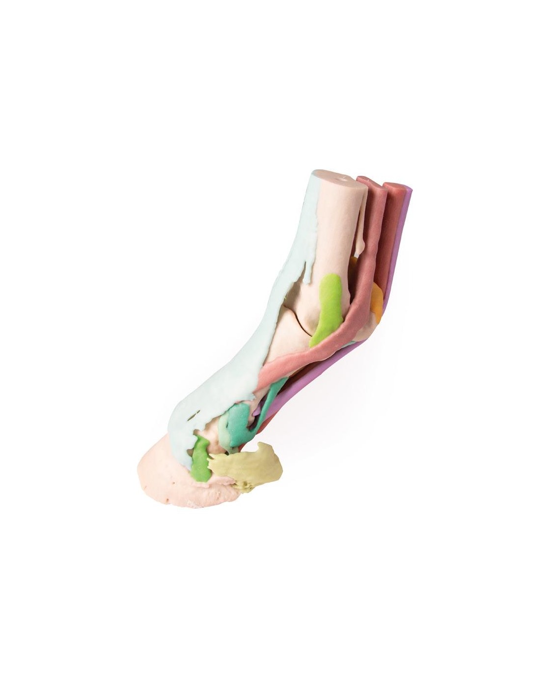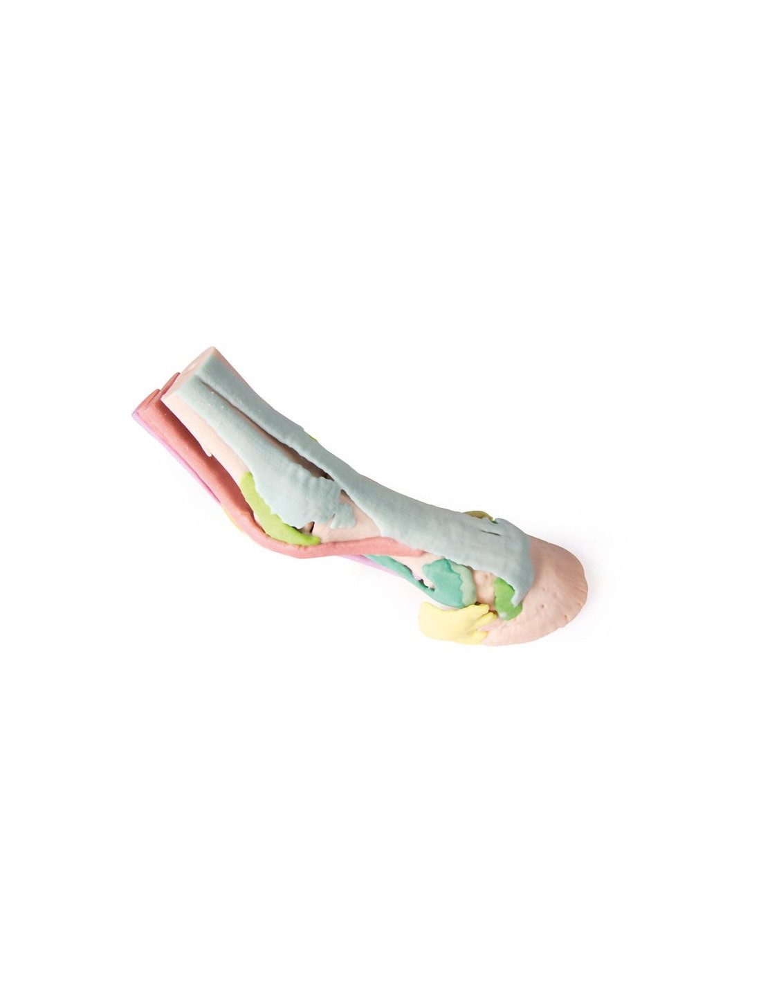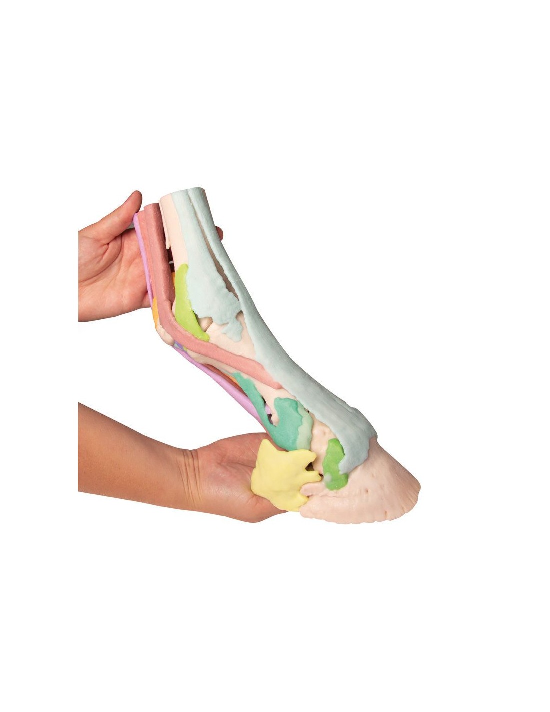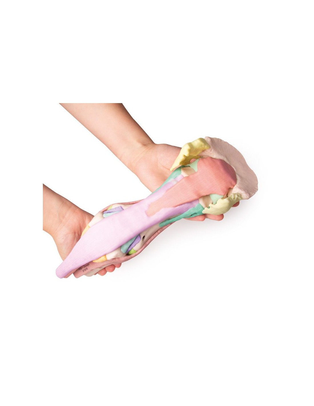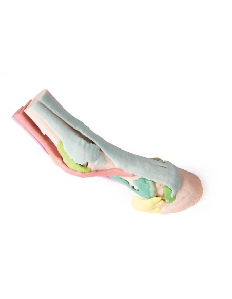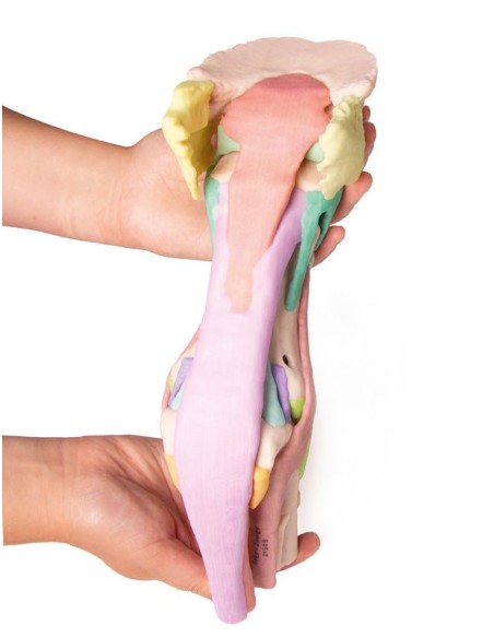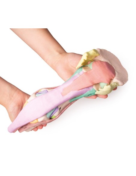 Este modelo del pie de un semental se obtuvo a partir de datos de TC y RM, es anatómicamente exacto y de tamaño natural. Producido mediante impresión 3D a todo color, cada estructura anatómica se representa en un color diferente. La cápsula córnea está disponible por separado y puede fijarse al miembro de pie. Hay cuatro modelos disponibles: desde la anatomía completa, que consta de 25 estructuras coloreadas, hasta modelos progresivamente más pequeños en los que son visibles estructuras más profundas.