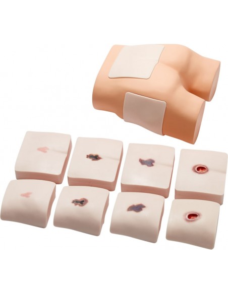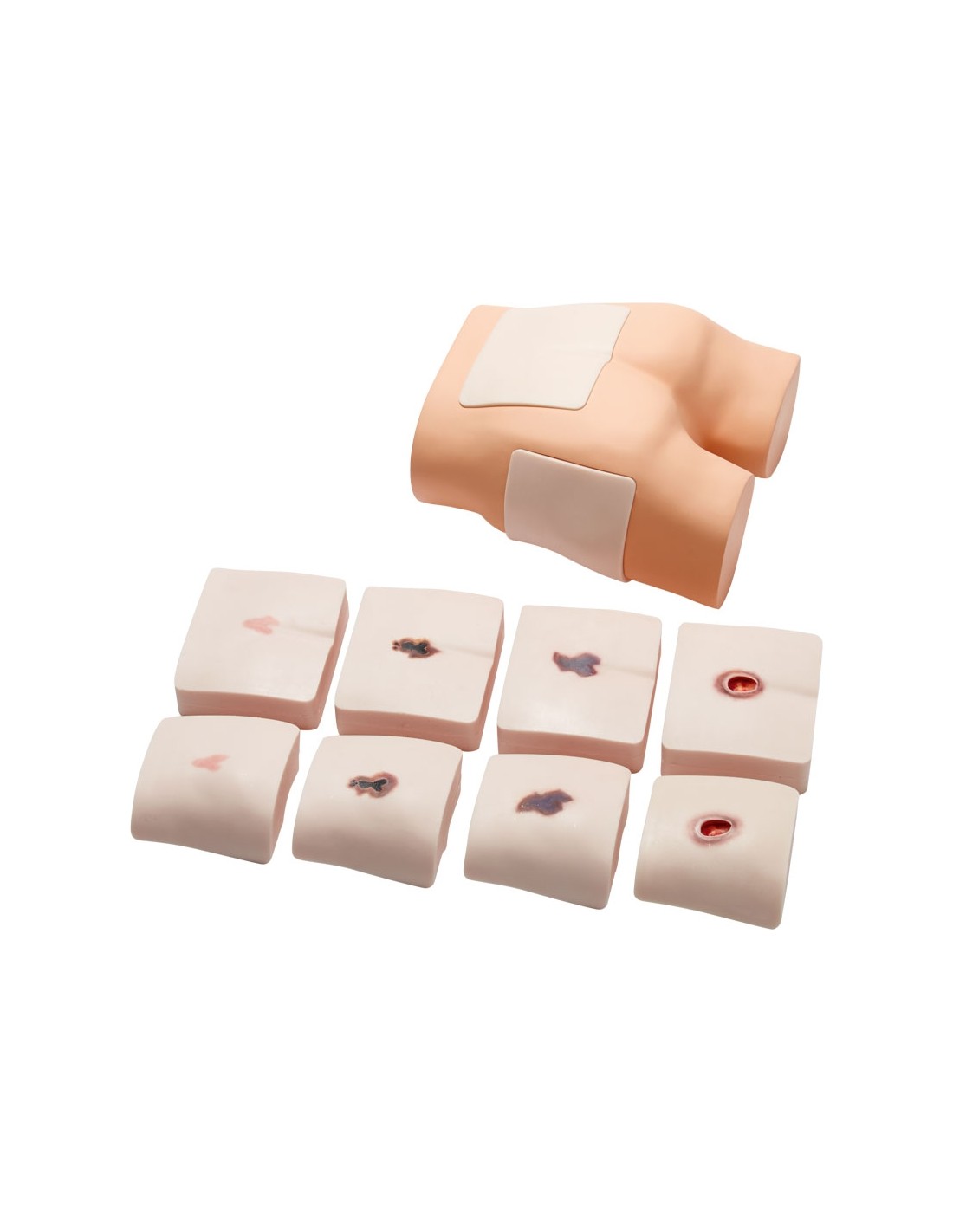 El maniquí tiene dos almohadillas reemplazables en dos lugares donde la DTI normalmente ocurre con facilidad.