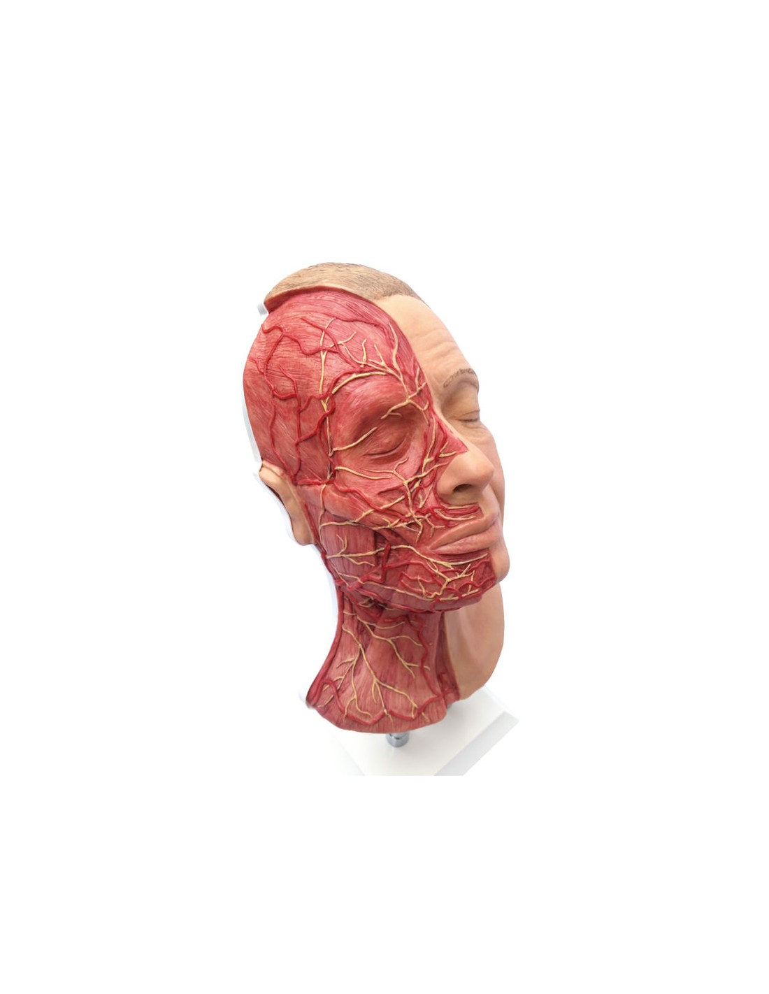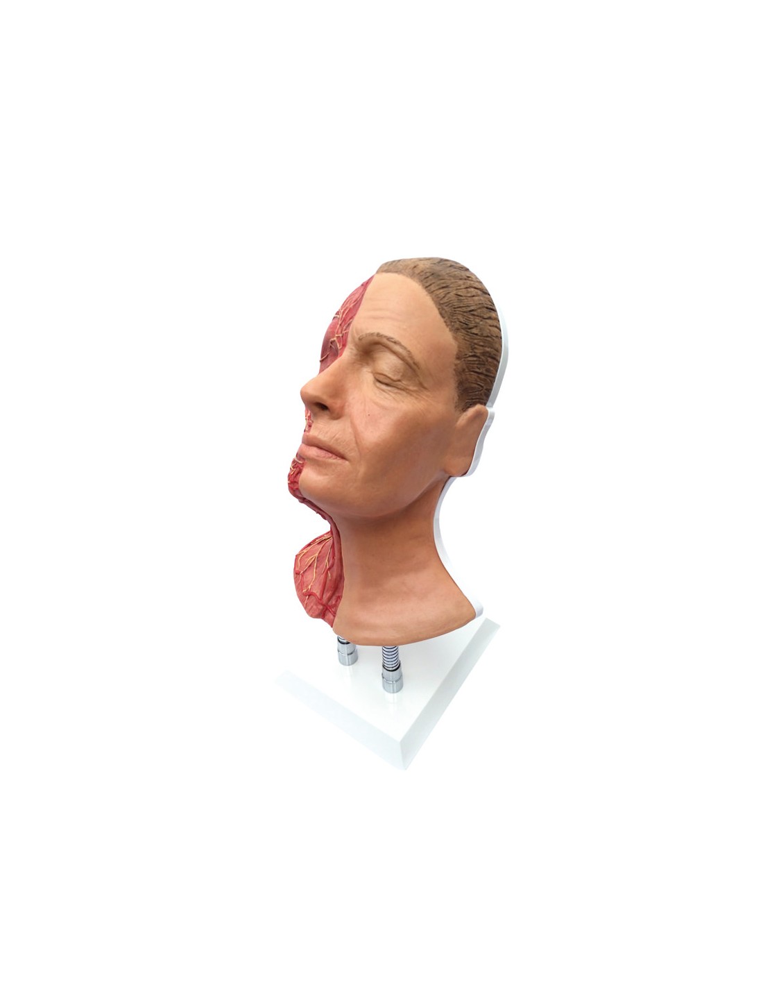 Este modelo específico para la formación en la realización de inyecciones faciales está fabricado con silicona protésica curada al platino para garantizar el máximo nivel de calidad posible y una sensación táctil realista.