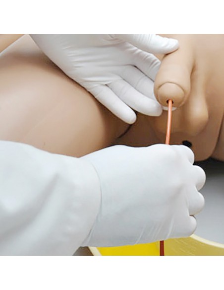 Este maniquí facilita la práctica de una variedad de procedimientos clínicos para enfermeras y otros profesionales de la salud. La apariencia exterior del modelo es femenina, pero el maniquí se puede "convertir" en un maniquí con órganos sexuales masculinos uniendo los genitales masculinos.