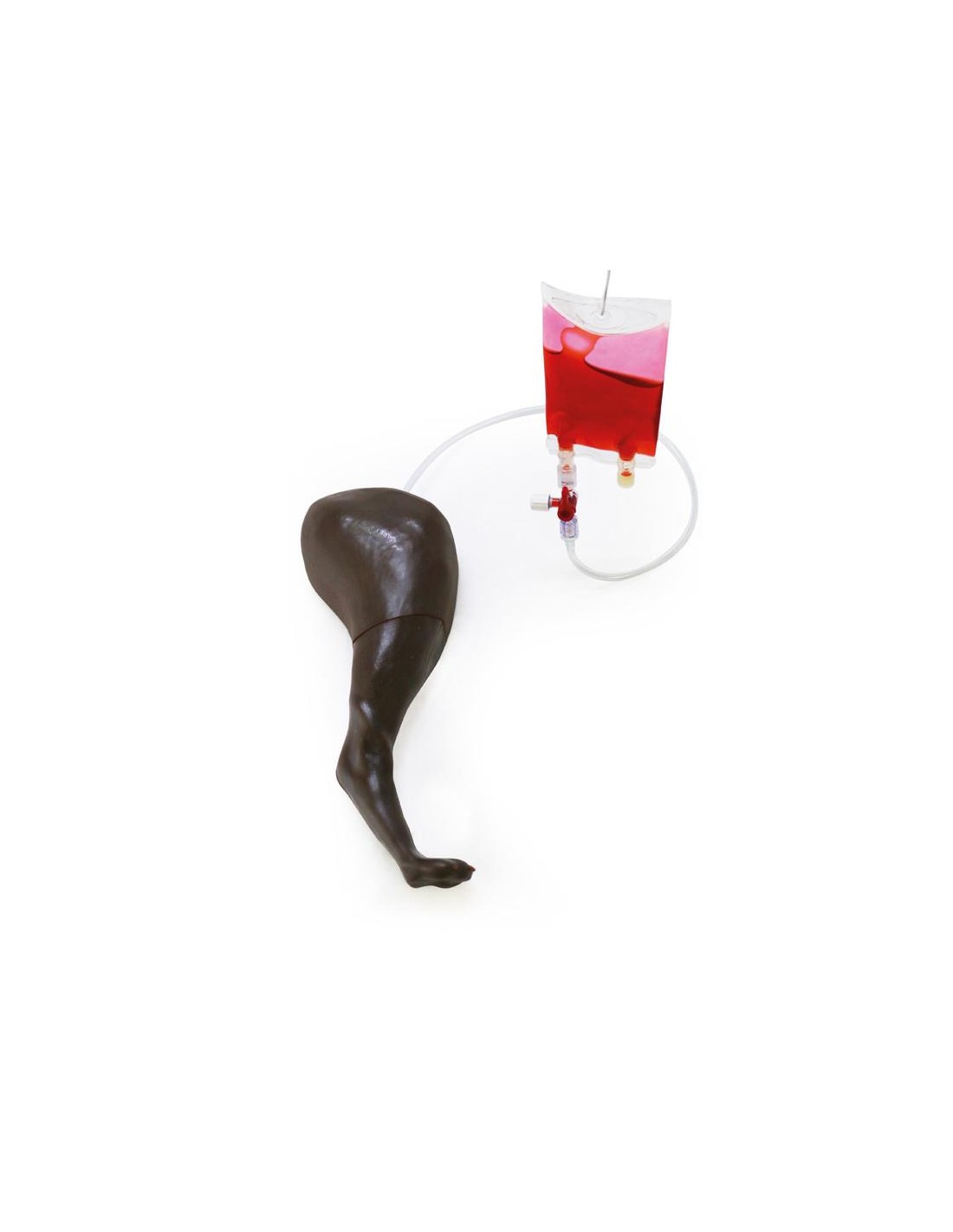 . Cada modelo completo contiene: un entrenador para venopunción/flebo de la parte inferior de la pierna, un entrenador para inyección en el muslo, un tubo de goteo y una bolsa de goteo precargada con nuestra sangre simulada.