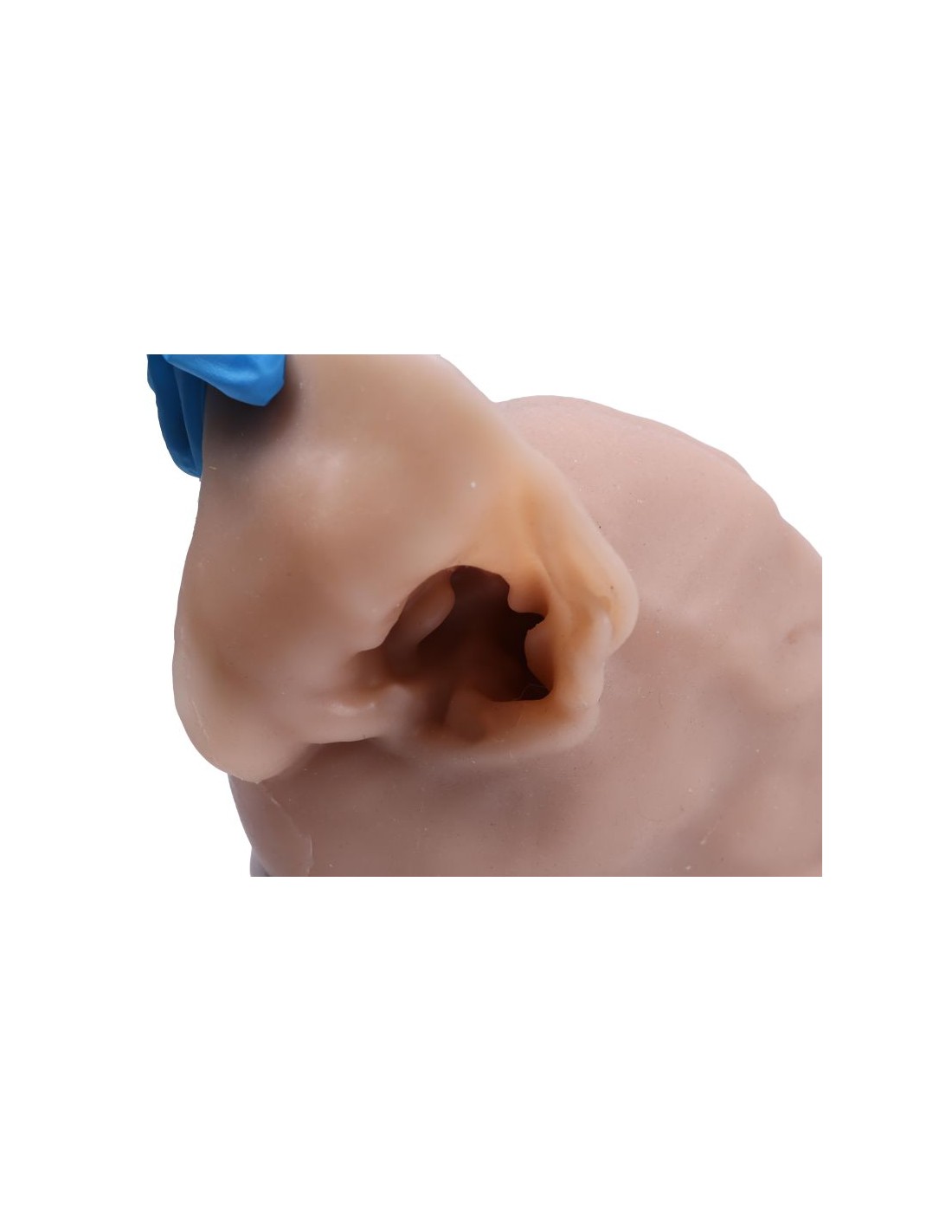- Introducción de cerumen artificial: Se proporciona una abertura en el conducto auditivo sano para la introducción de cerumen artificial, lo que aumenta el realismo de la formación.