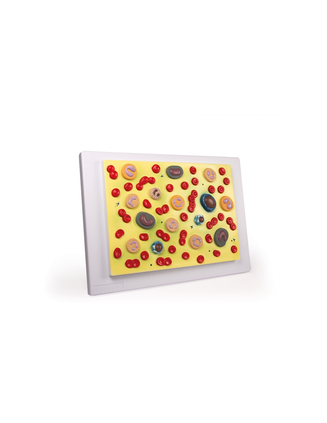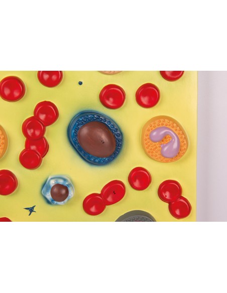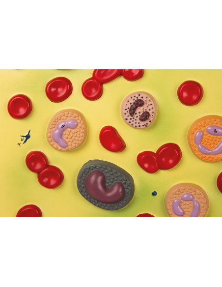 El modelo anatómico de células sanguíneas Erler Zimmer G165 representa una ampliación de aproximadamente 2000x de diferentes tipos de células sanguíneas.