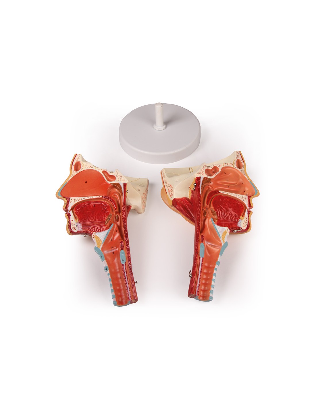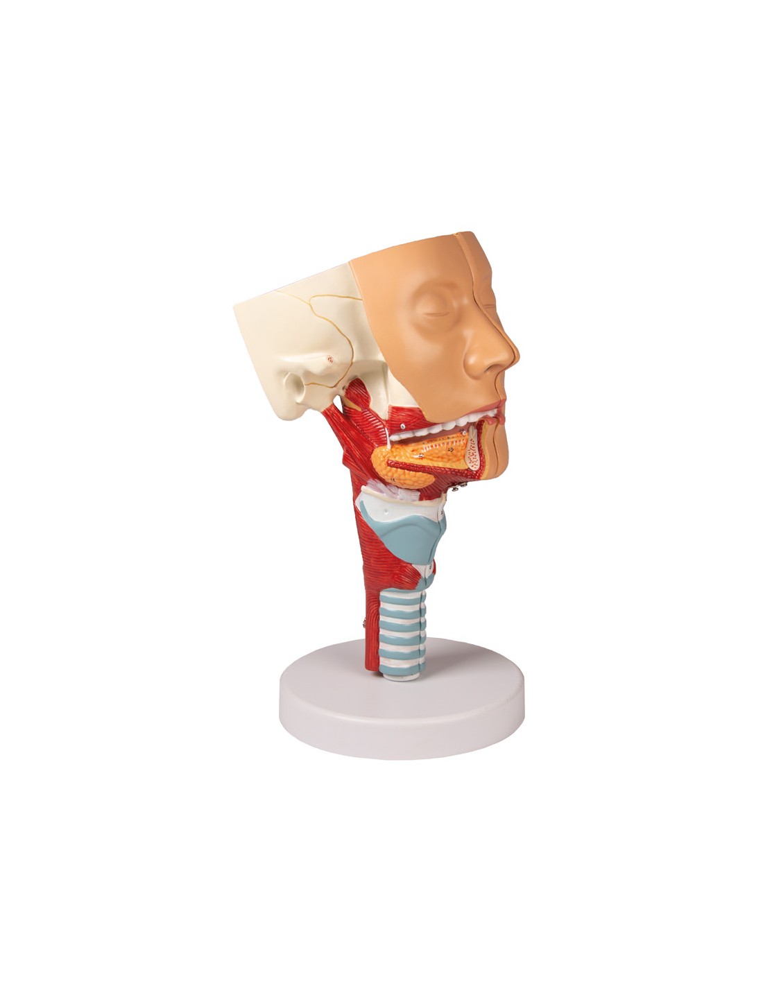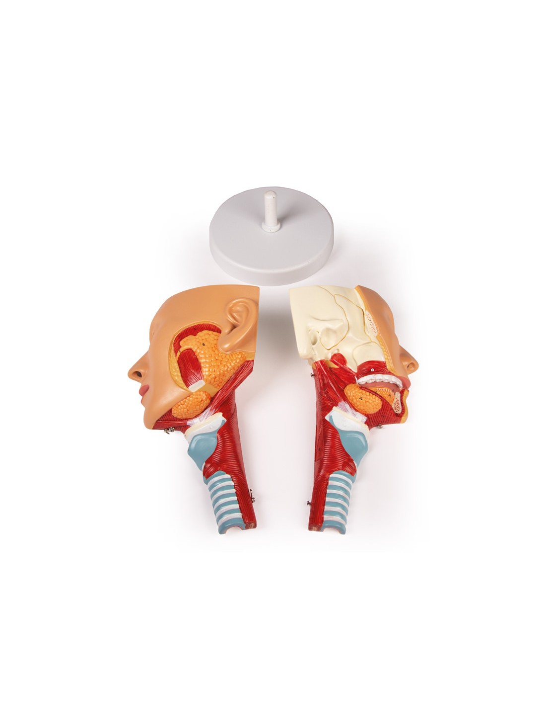 Modelo anatómico, reproducción de cabeza con garganta y laringe, separable en dos partes.