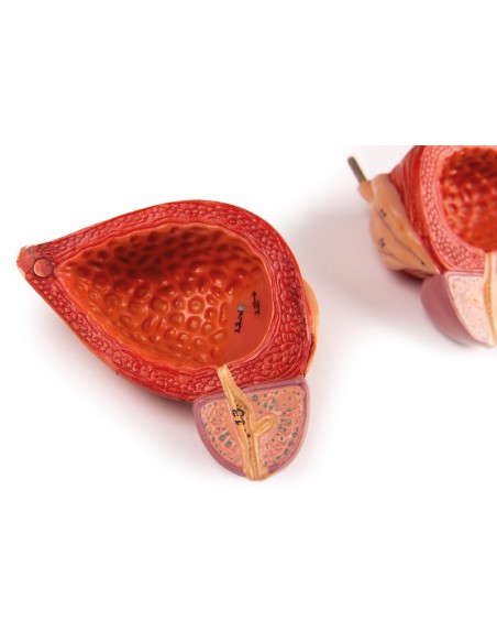 La vejiga puede abrirse para mostrar la mucosa, el triángulo vesical, la uretra, las vesículas seminales, el conducto eyaculador y los conductos deferentes.