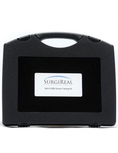 El kit de entrenamiento de sutura de SurgiReal combina una almohadilla de sutura con un conjunto de herramientas, y tres paquetes de suturas de práctica 3-0 no estériles.