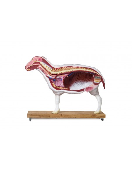 Puede dividirse en al menos 12 partes del cuerpo y órganos separados. El modelo muestra detalles de la anatomía externa e interna - incl. en un lado la estructura muscular de la oveja, en el otro lado es visible la estructura externa.