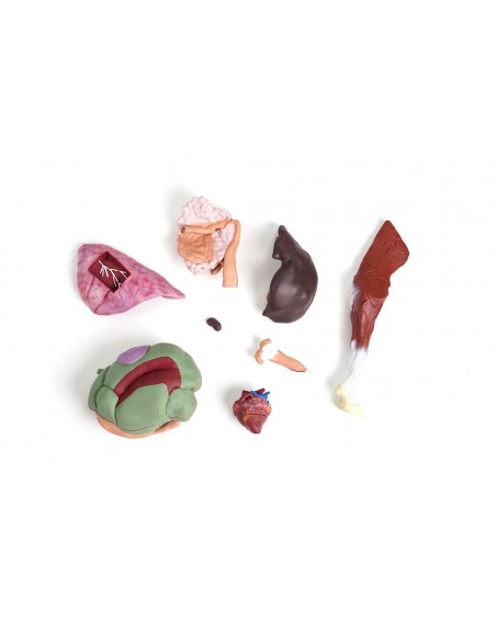 Es posible dividir todo el modelo en una sección sagital, en la que la estructura interna del tórax del animal y los órganos de los sistemas digestivo, reproductor y excretor pueden desmontarse en partes.