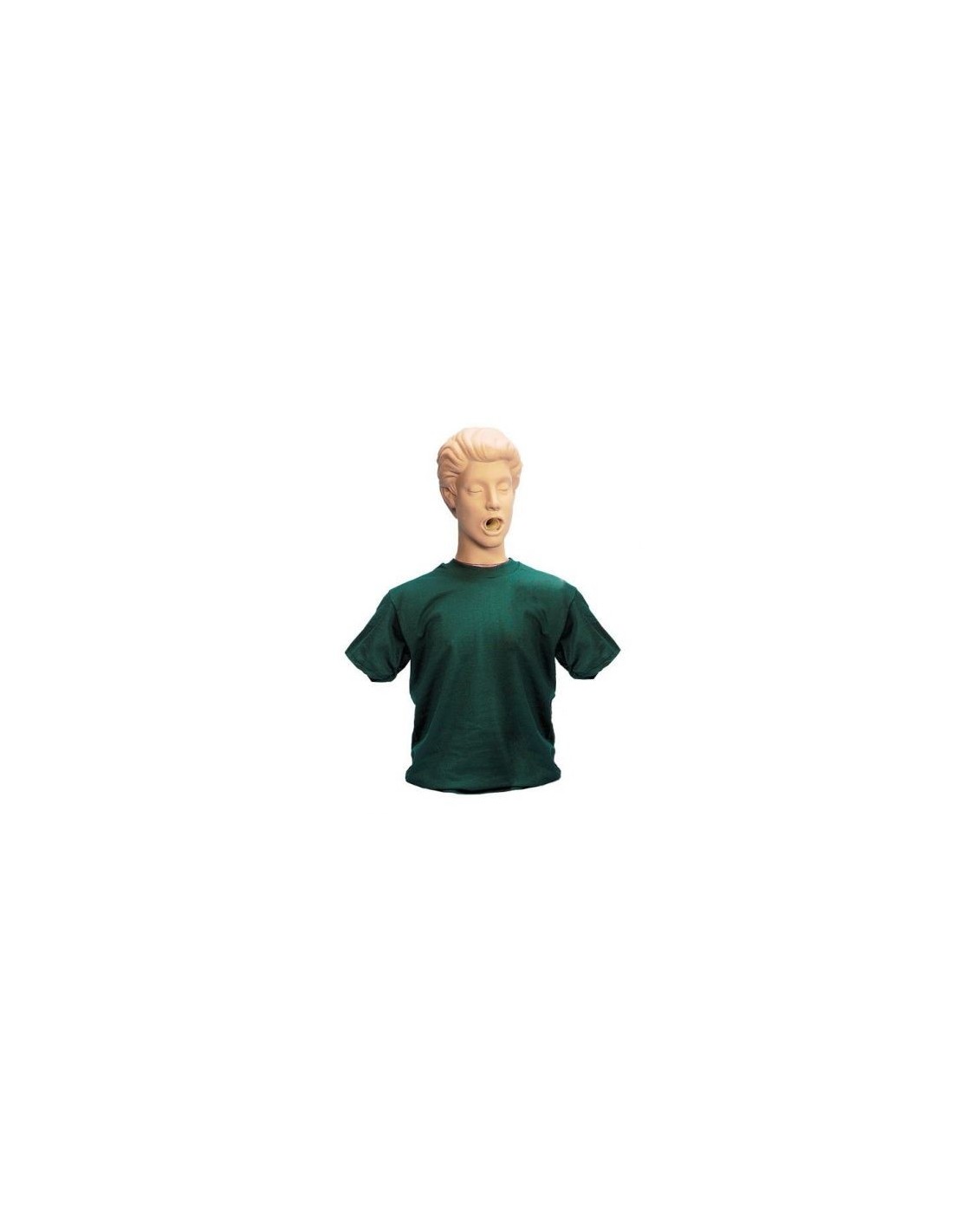Este simulador médico de primeros auxilios es un torso de tamaño real que permite la práctica de compresiones abdominales y torácicas, la maniobra de Heimlich y la inspección de la boca para despejar una obstrucción de las vías respiratorias.