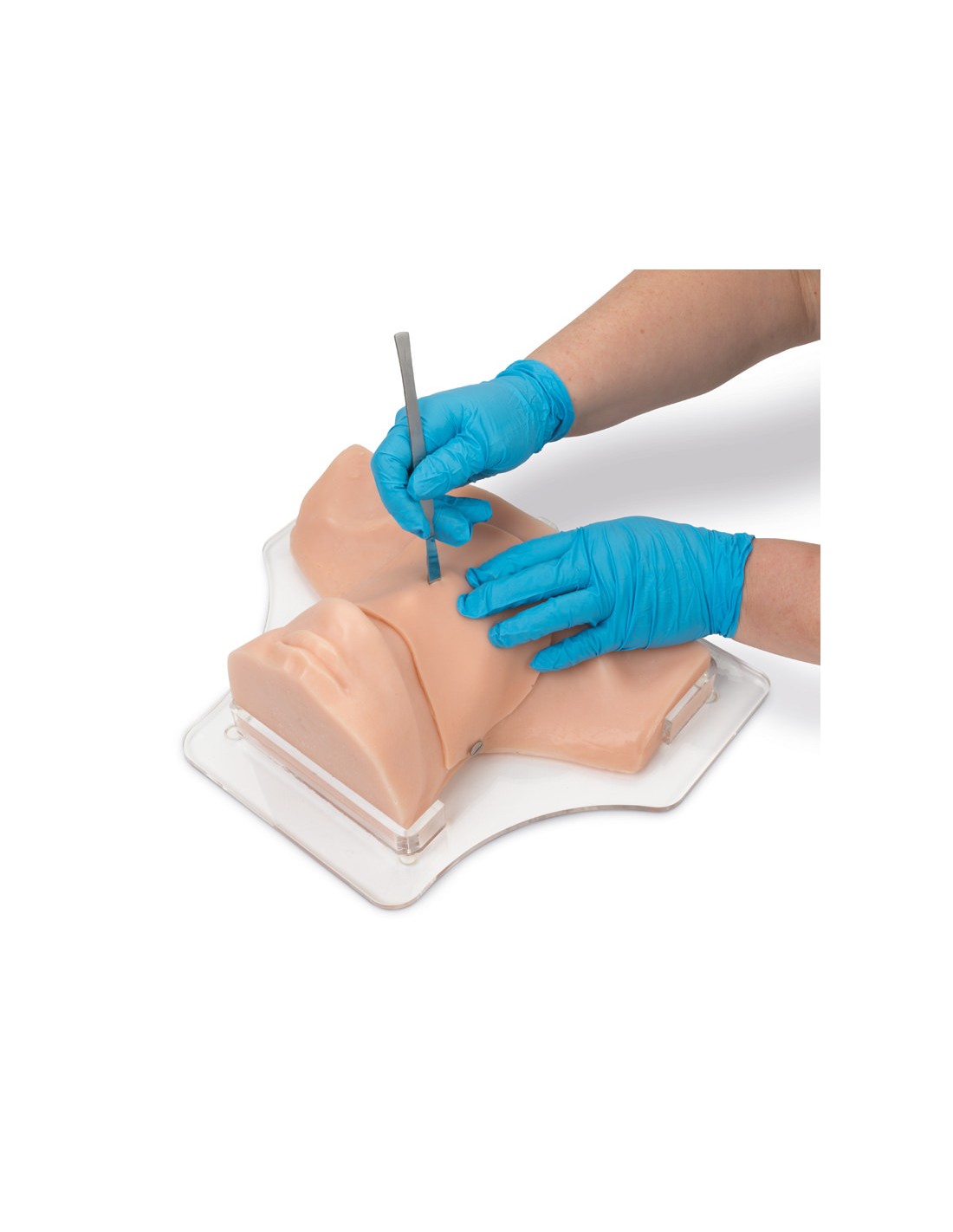 El nuevo simulador de cricotirotomía se ha desarrollado para aprender y practicar las técnicas necesarias para realizar procedimientos de cricotirotomía con aguja o quirúrgicos.